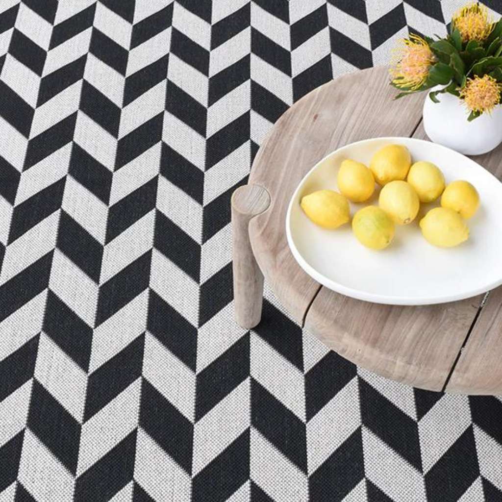 A bold Rug which uses an interplay of inverted chevrons derived from Heraldic symbols.