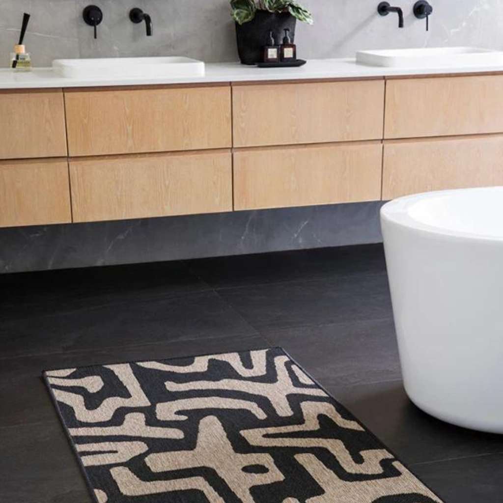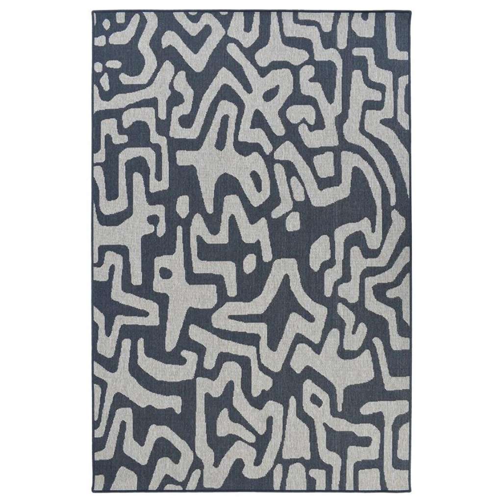 A Rug using the abstract shapes found in raffia cloths woven traditionally for ancient warriors and kings.